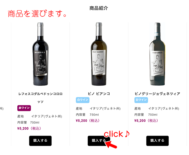 ご希望の商品を「カートに入れる」ボタンでカートに入れ、カート画面から簡単にご購入手続きを進められます。